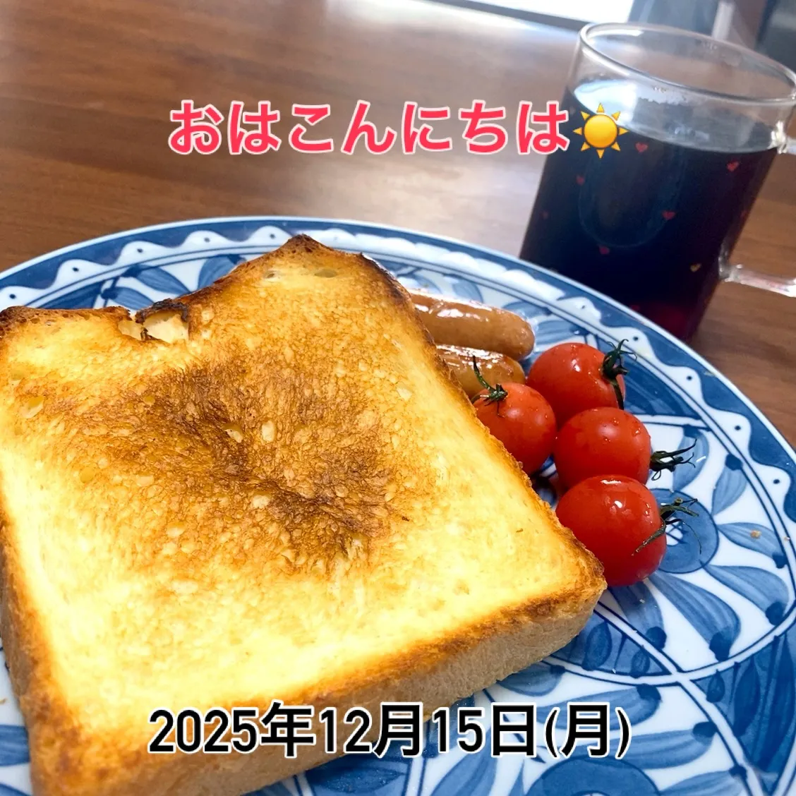 おはこんにちは✨ 2025/12/15 おはこんにちは✨ 今日は、お弁当が要らず🍱 息子にも、朝ごはん用意していたので母はゆっくり休んでいました🥰 ゆっくり朝食食べて、これから洗濯物片付けます‼️ 今週も、よろしくお願いいたします🙏 #こんにちは #今週も #よろしくお願いいたします